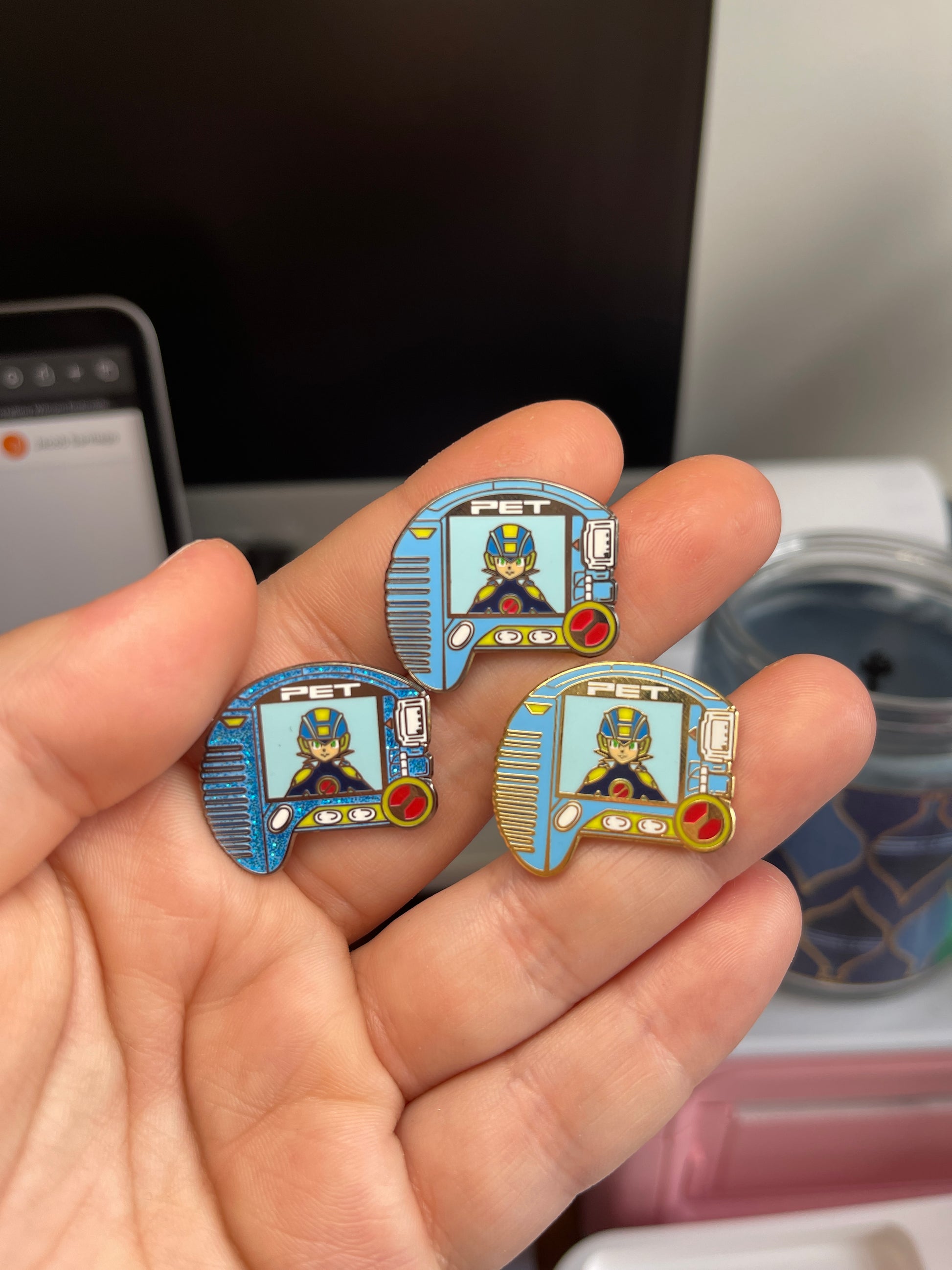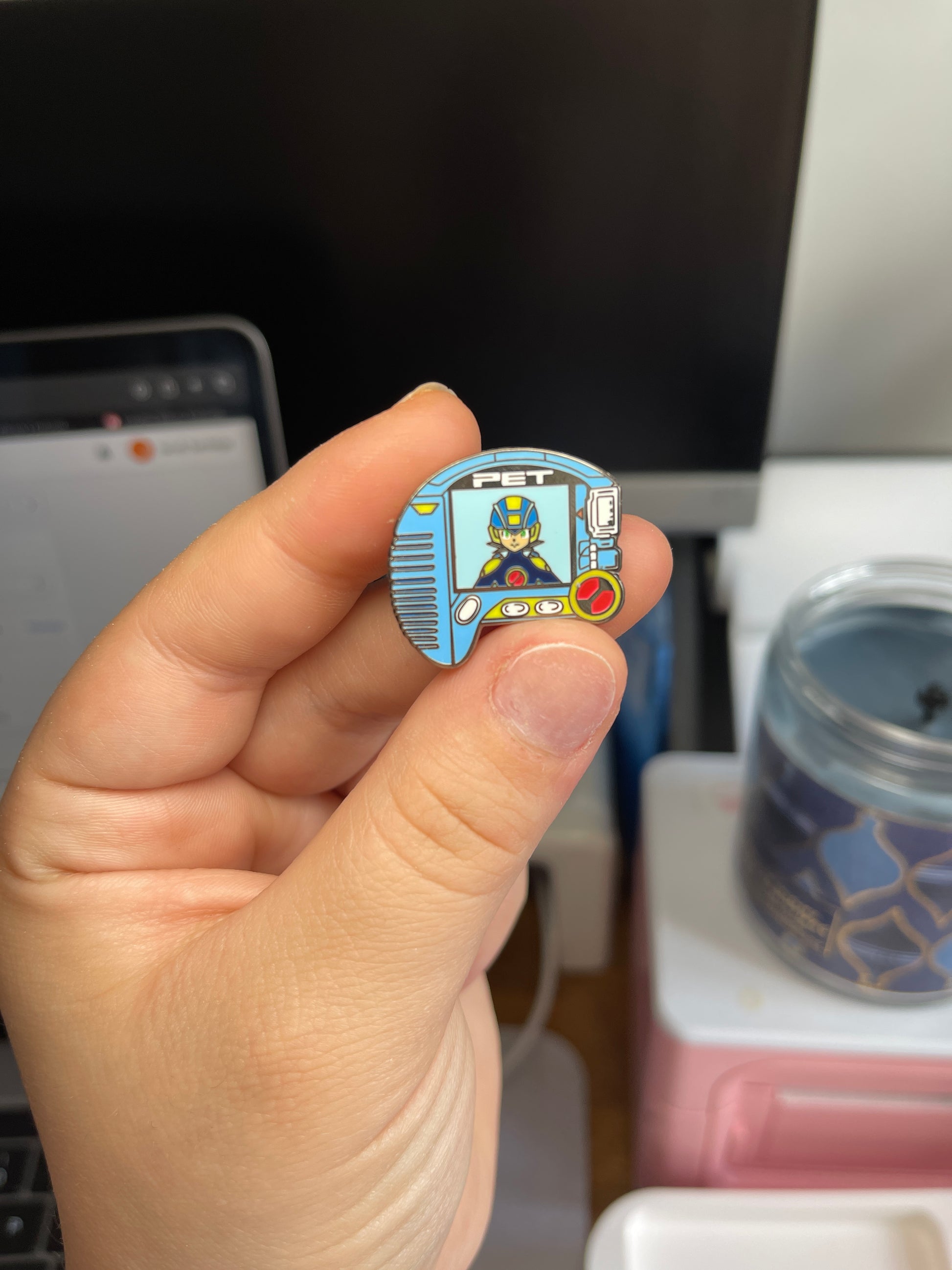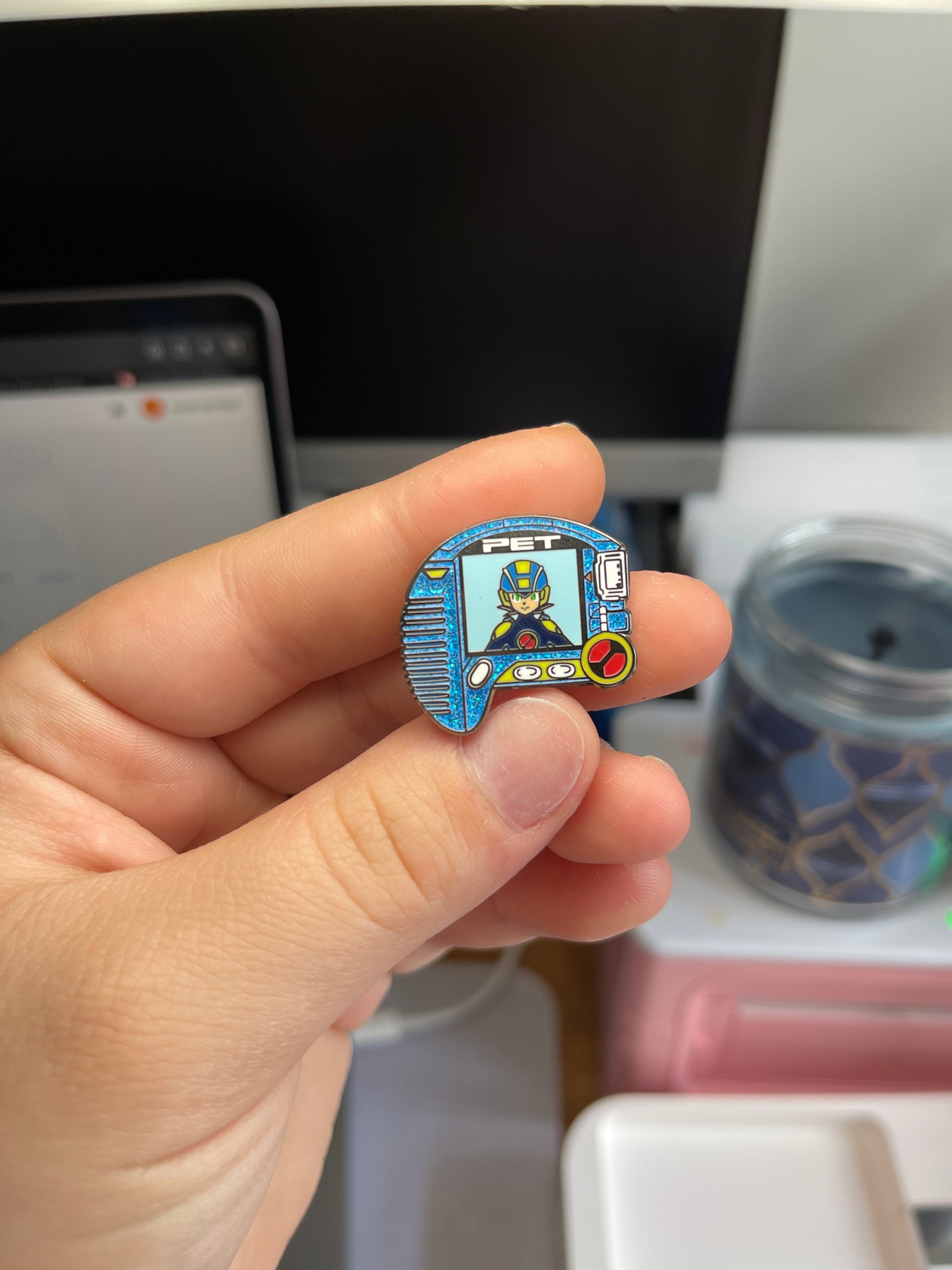 This is a Exe enamel pin 1.5 inch. These are currently in hand.